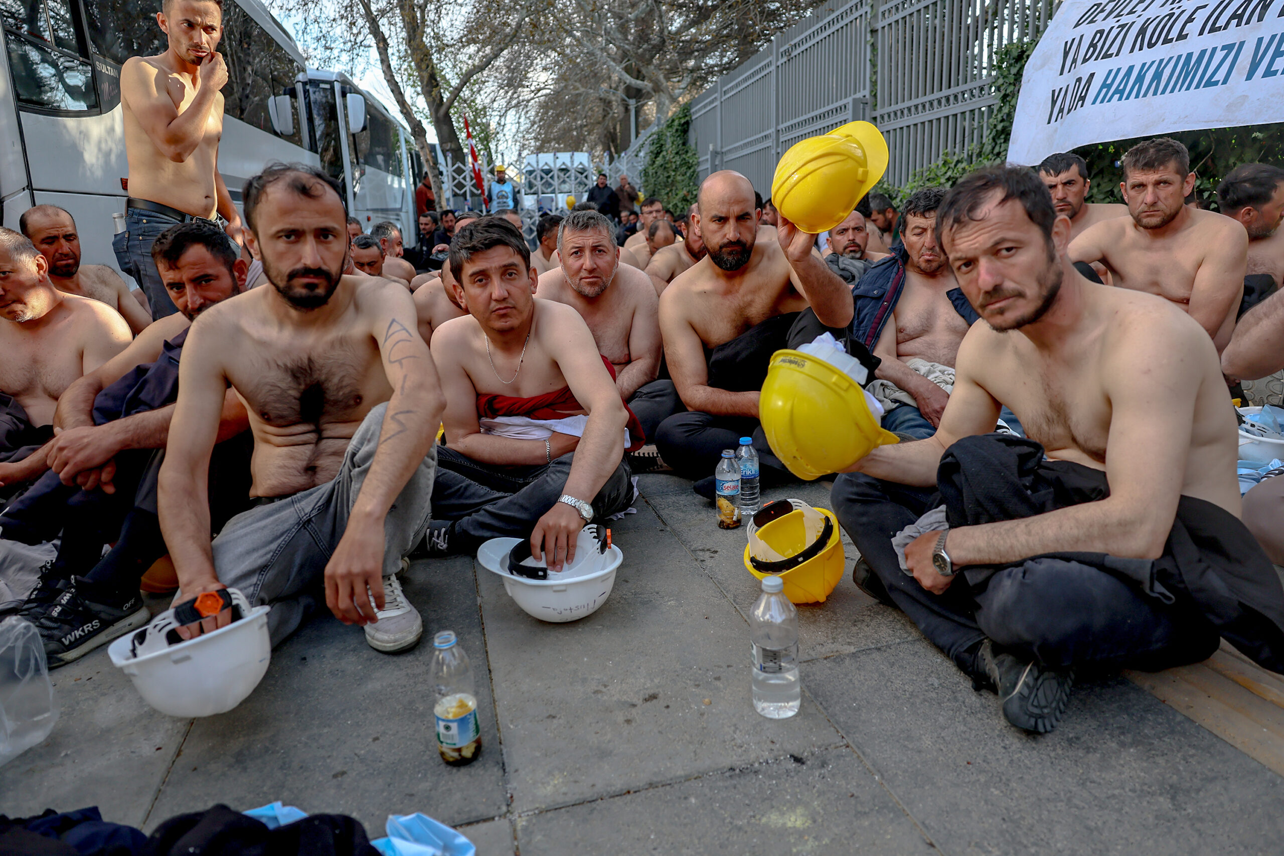 Des mineurs turcs organisent un sit-in torse nu et une grève de la faim pour réclamer des salaires impayés
