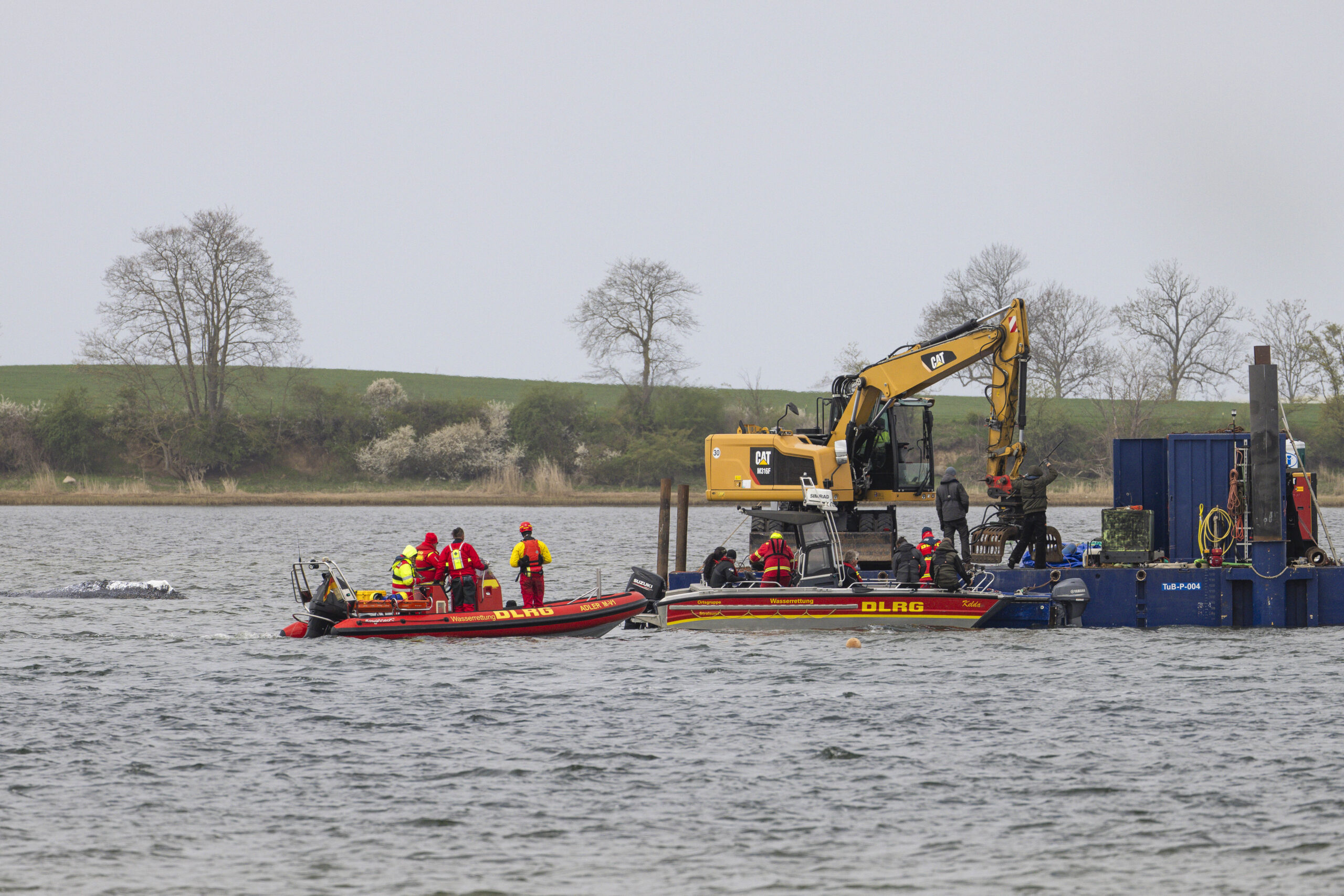 Die Initiative will den in einem flachen Buchtbereich gestrandeten Wal dennoch mit einem teils absenkbaren Kahn bergen, in dem er wie in einem Becken schwimmend bis in Nordsee oder Atlantik gebracht wird. Ihren Angaben nach soll die Aktion frühestens Dienstag beginnen, nach Ankunft in Wismar sind an dem Schiff noch einige vorbereitende Arbeiten nötig. Zur Vorbereitung gruben die Retter mit Baugerät bereits eine 110 Meter lange Rinne durch den Flachwasserbereich, in dem der Wal derzeit liegt.